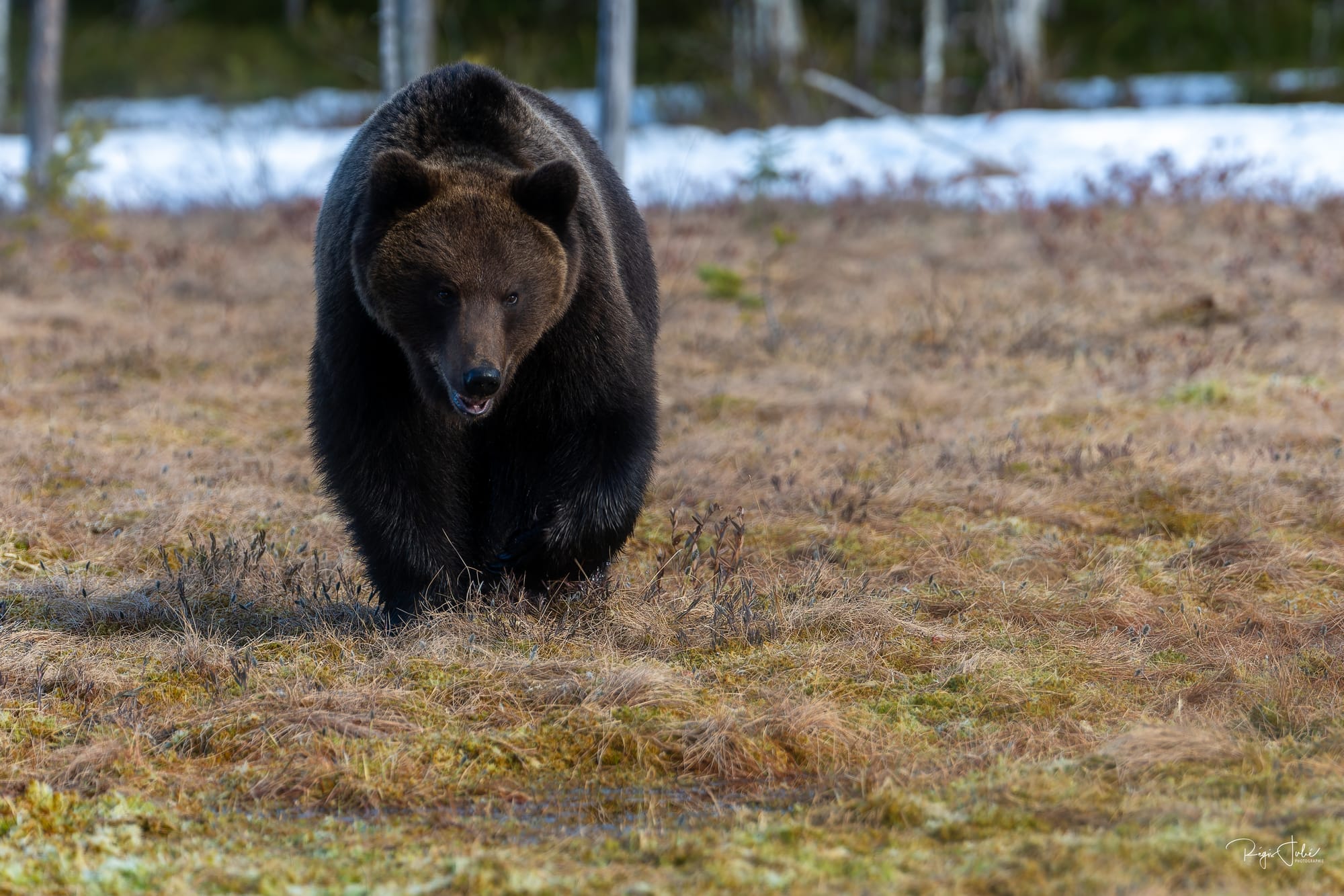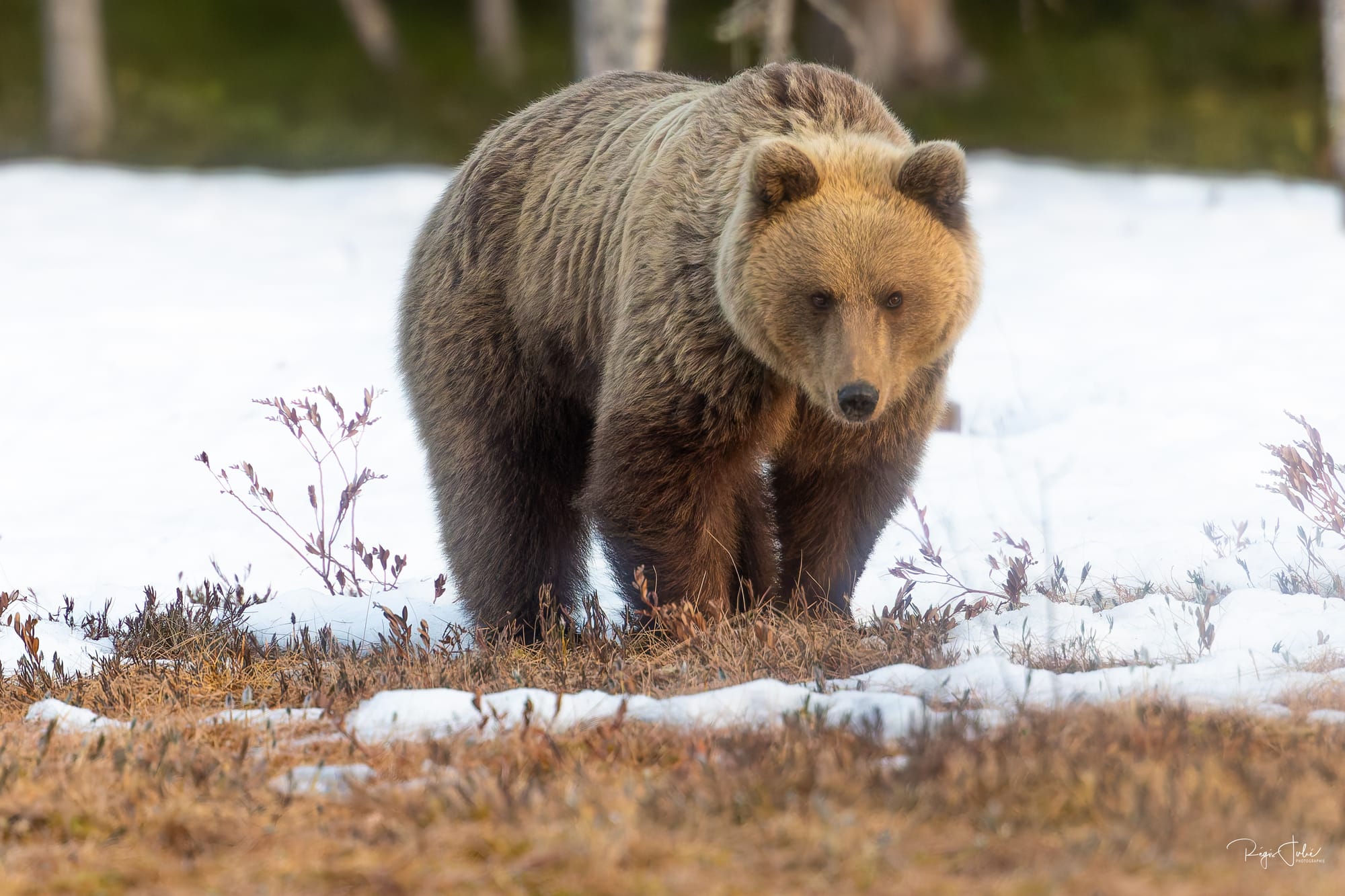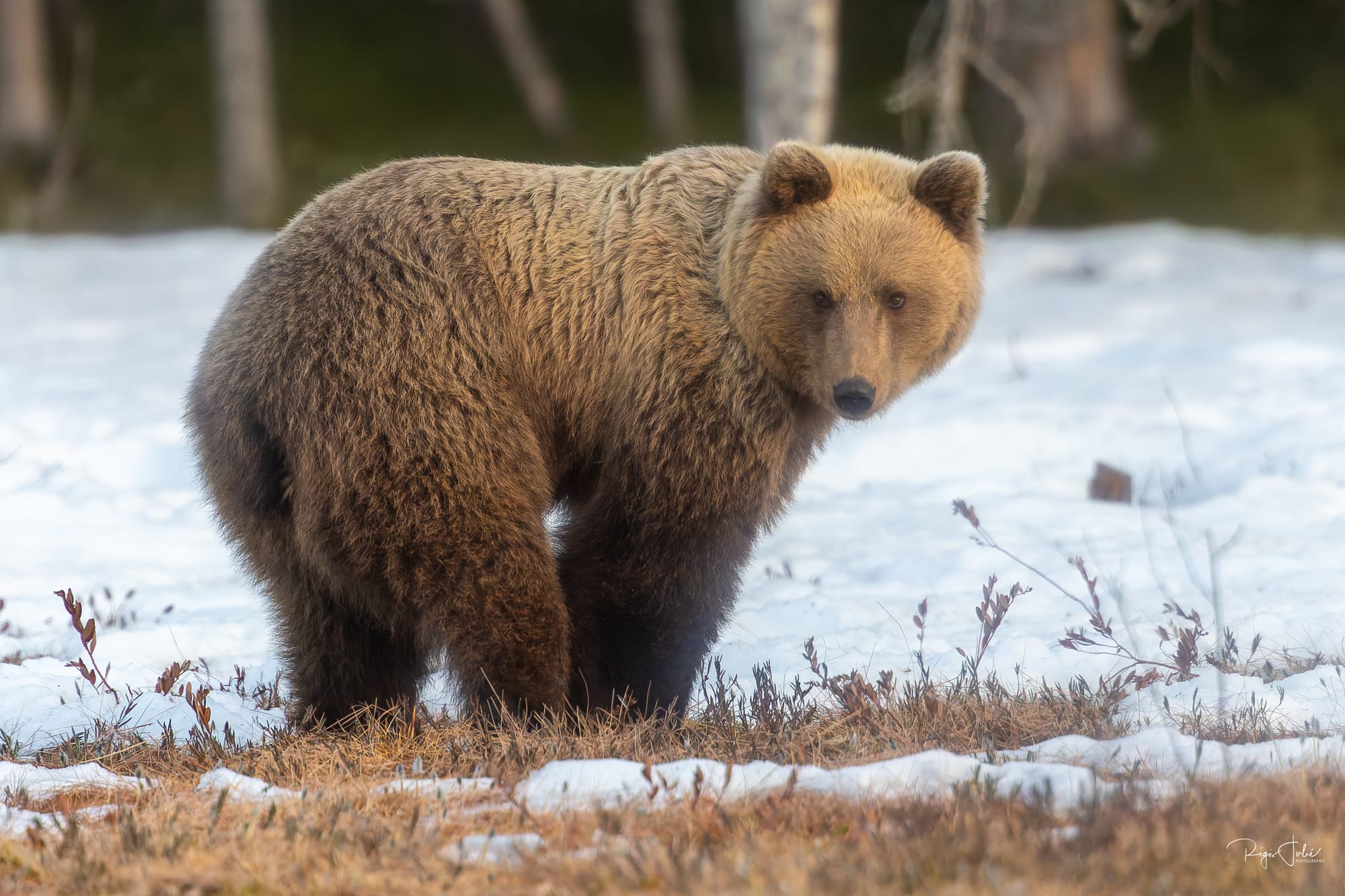 Avec ses vastes forêts boréales, la Finlande offre un habitat idéal pour l'ours brun (Ursus arctos). Selon les dernières estimations de l'agence finlandaise pour la faune sauvage, la population d'ours brun dans le pays s'élève à environ 2 000 individus. C'est l'une des plus importantes populations d'Europe.