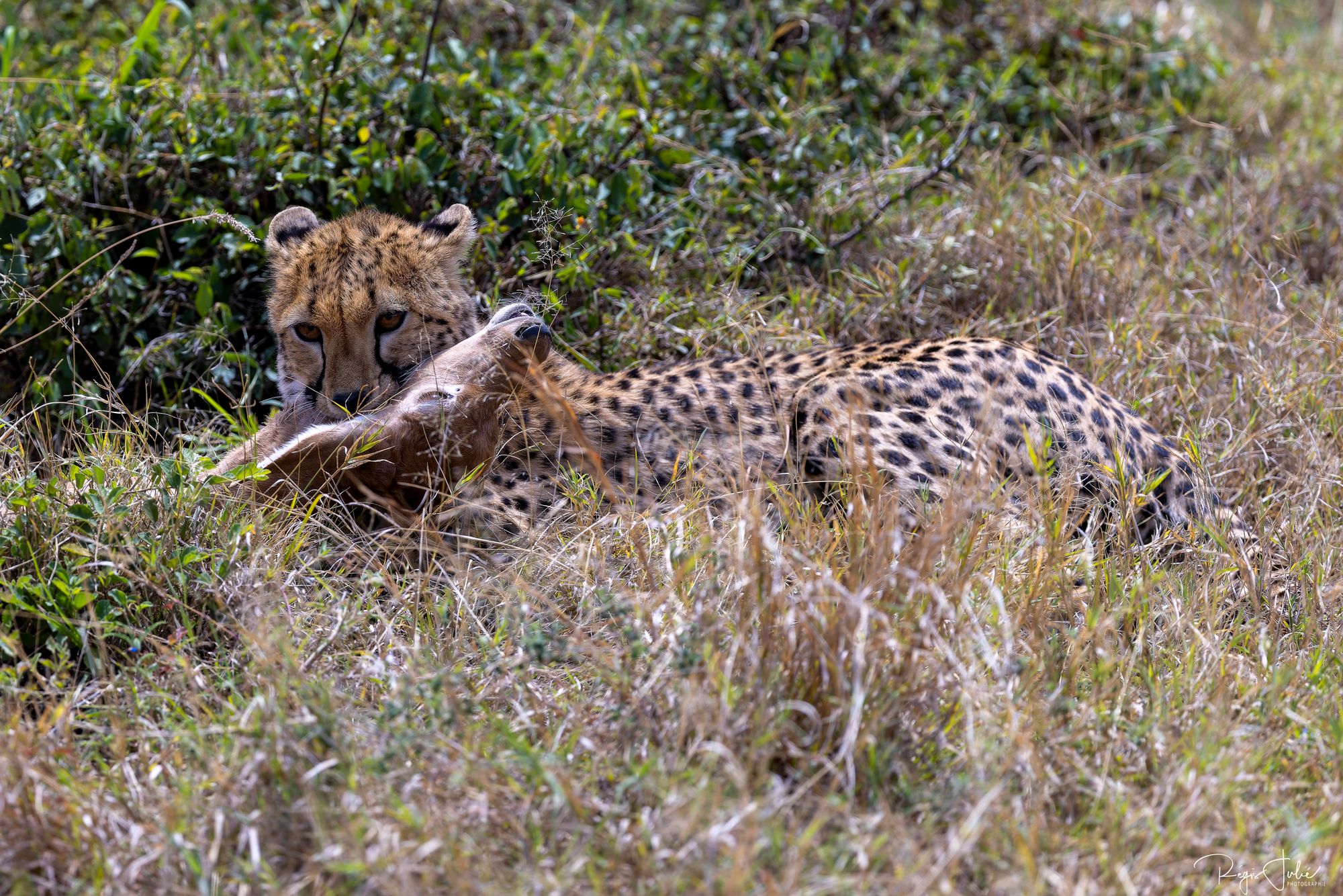 We attended a cheetah hunt. Poorly positioned, there will be no photos of the race, just the meal, but it is impressive to see the speed at which they go.