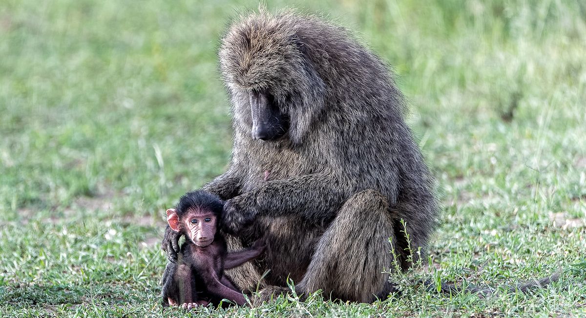 Un babouin avec son bébé de quelques jours seulement, en pleine séance d'épouillage. C'était un moment d'intimité et de tendresse entre ces primates, où le lien familial se renforçait. Une véritable leçon de soin et d'affection dans le monde animal.