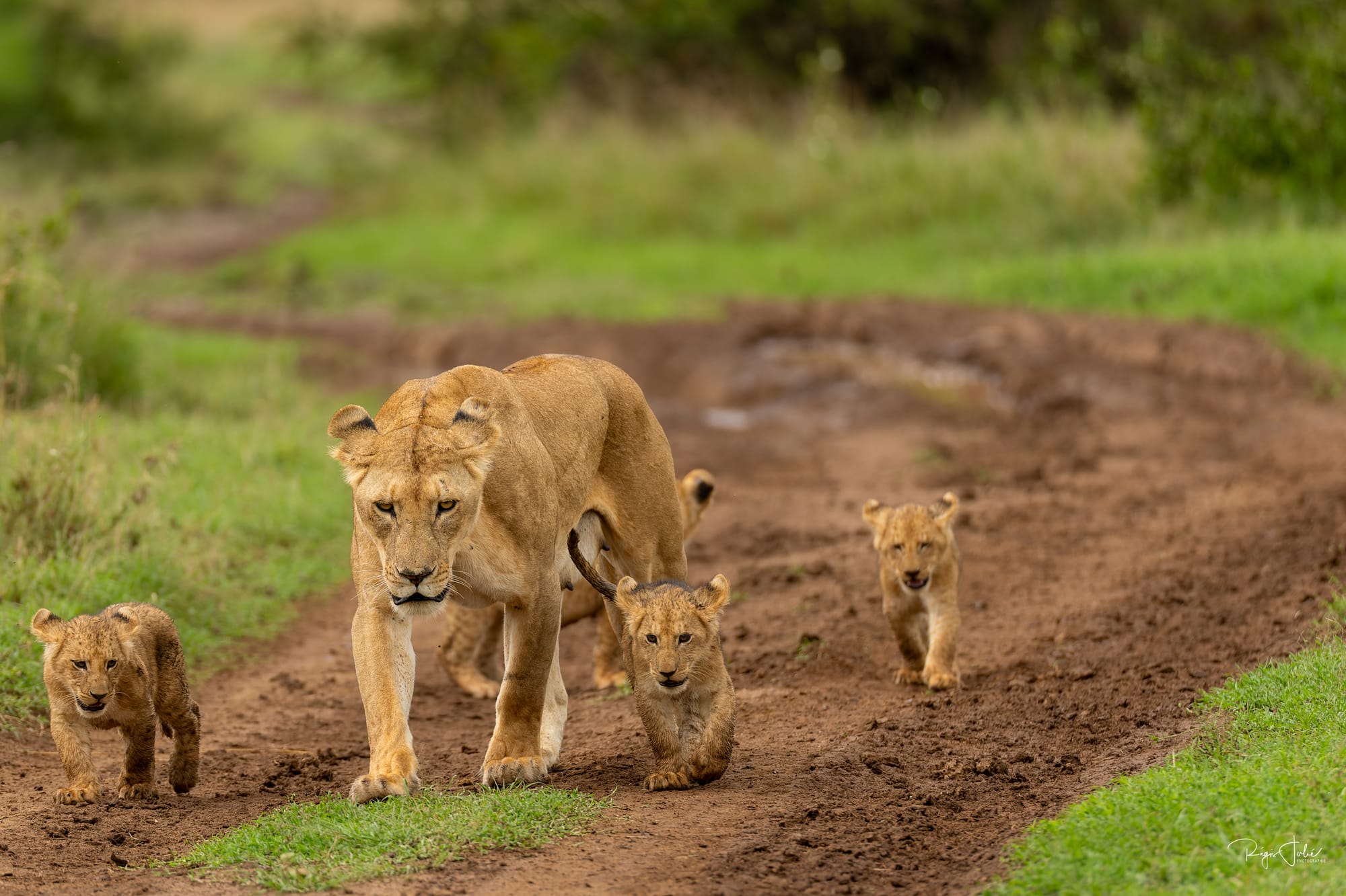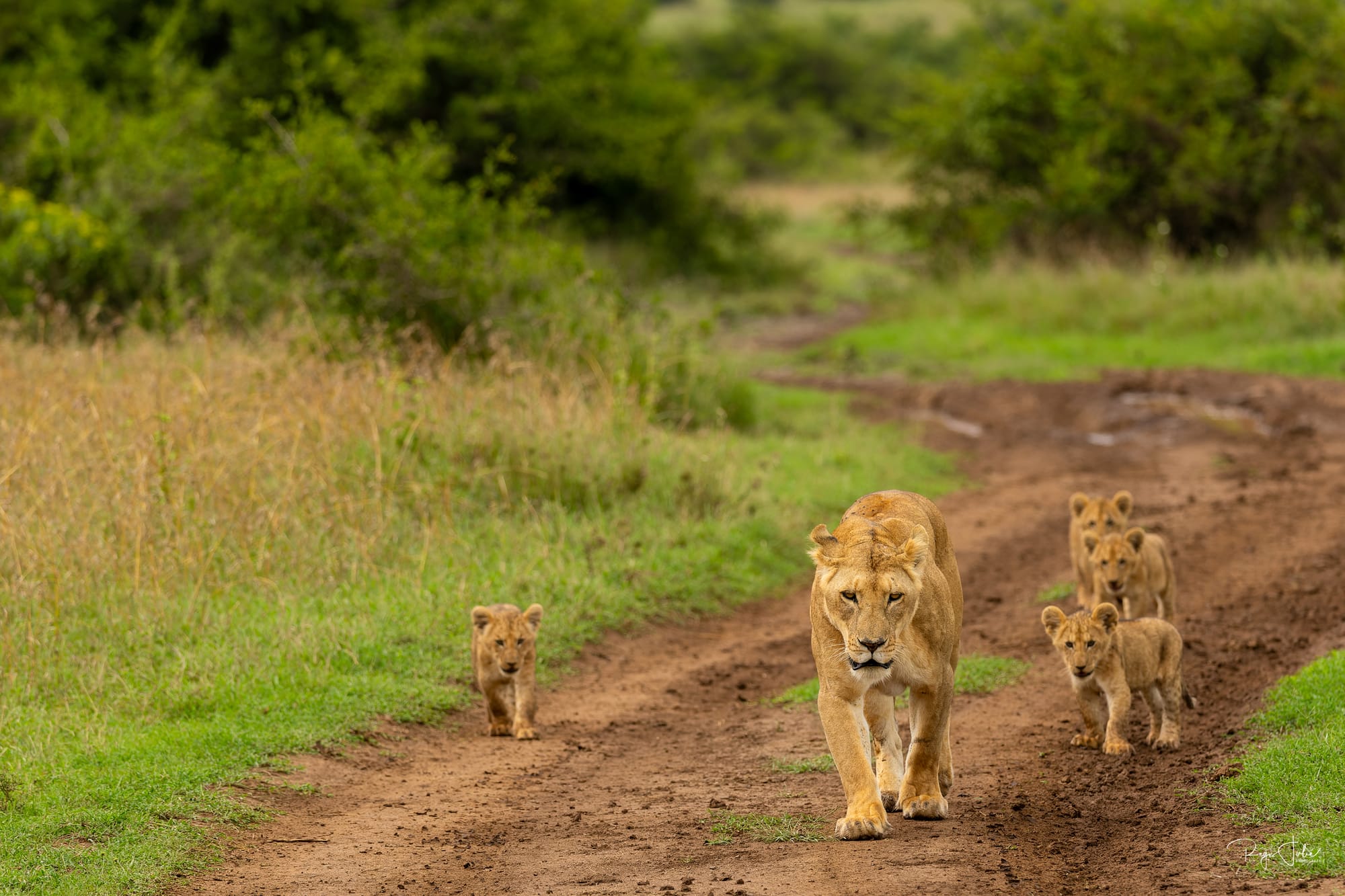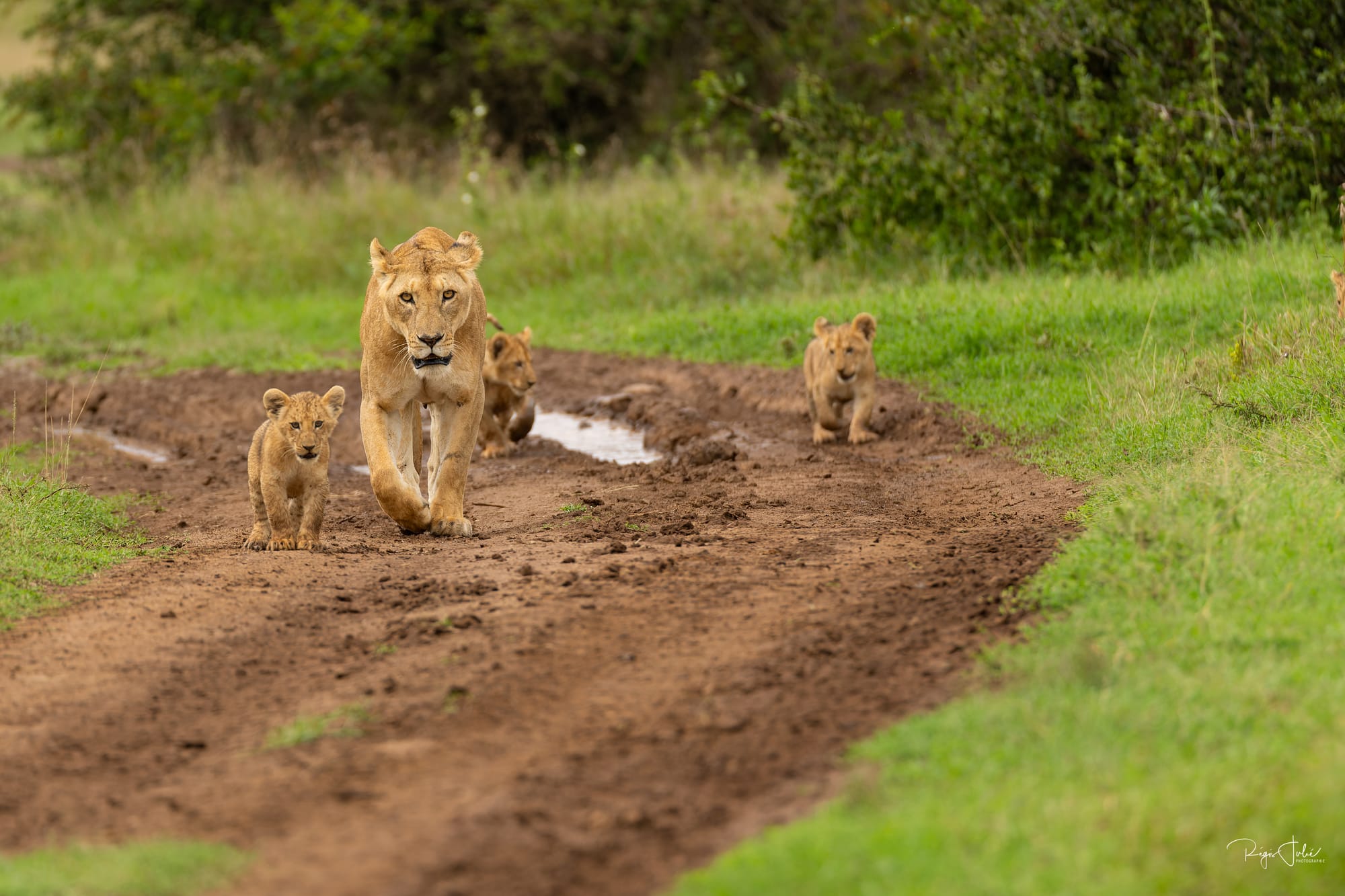 Solio abrite aussi des félins, nous avons eu la chance de croiser la route d'une lionne avec ses 4 garnements. Sur le coup on peut dire merci à nos guides de Melting Pot Safari pour les avoir vus dans les hautes herbes et nous avoir annoncé le nombre de petits avant que ceux-ci soient à découvert.