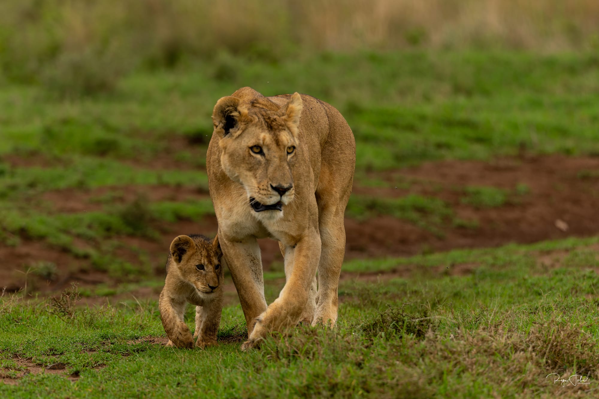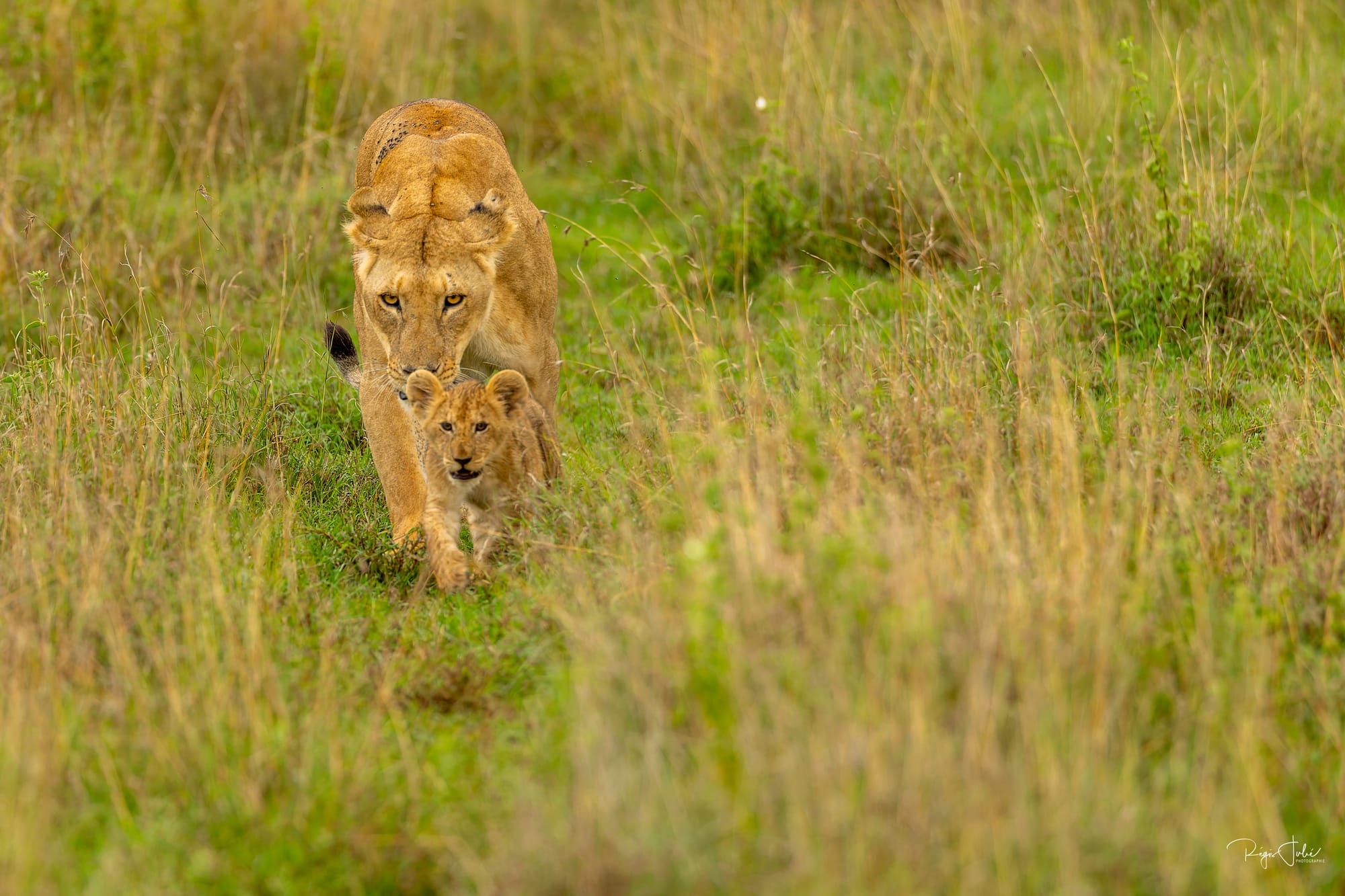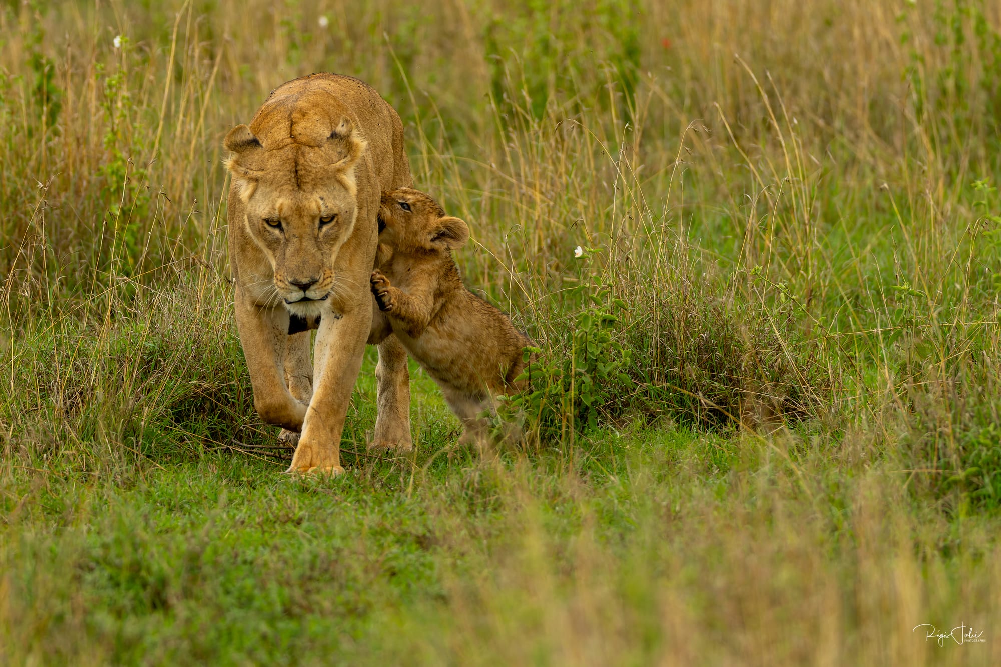 Solio abrite aussi des félins, nous avons eu la chance de croiser la route d'une lionne avec ses 4 garnements. Sur le coup on peut dire merci à nos guides de Melting Pot Safari pour les avoir vus dans les hautes herbes et nous avoir annoncé le nombre de petits avant que ceux-ci soient à découvert.